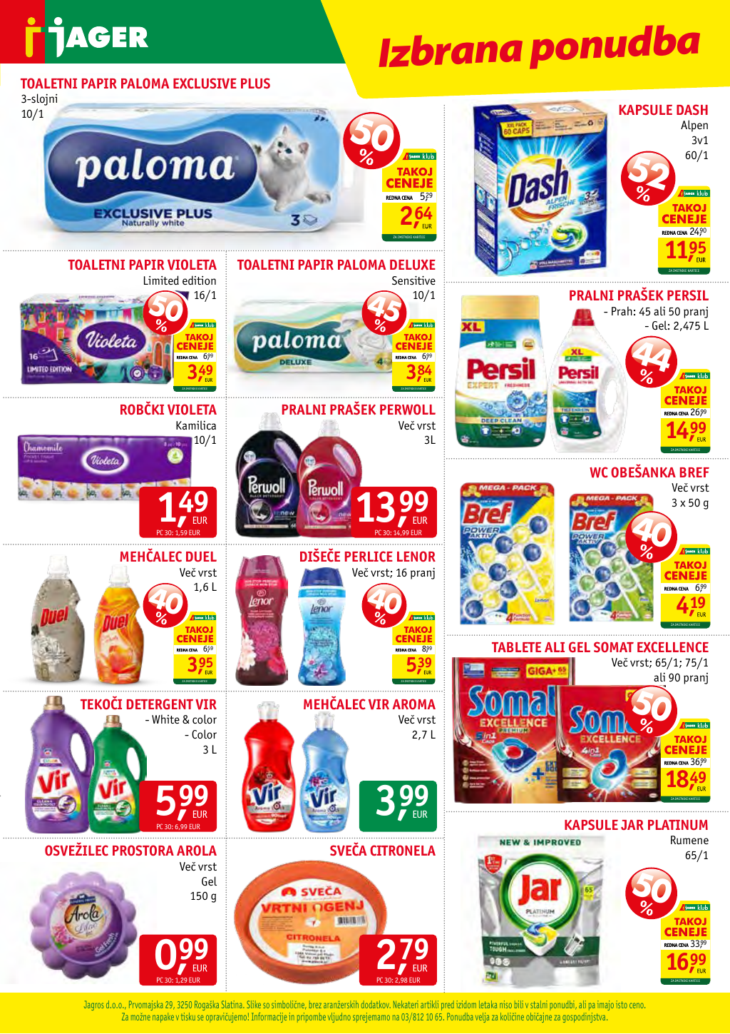 Jager – katalog 2026/18 Kartica Svetovalka Posted on 29. aprila, 2026 Posted in Novice, Ponudniki Tagged with Jager, katalogi Jager letak JAGER-Vedno poceniIzbrana ponudba. Obvestilo: Petek, 1.5.2026 - ZAPRTO, Sobota, 2.5.2026 - ZAPRTOVeljaven od 29.04.2026 do 05.05.2026 Share this: Share on X (Opens in new window) X Share on Facebook (Opens in new window) Facebook Related